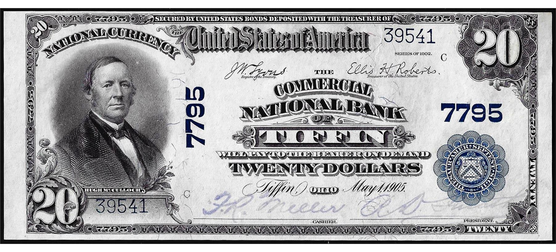 1902PB $20 Commercial NB of Tiffin, Ohio CH# 7795 National Currency Note