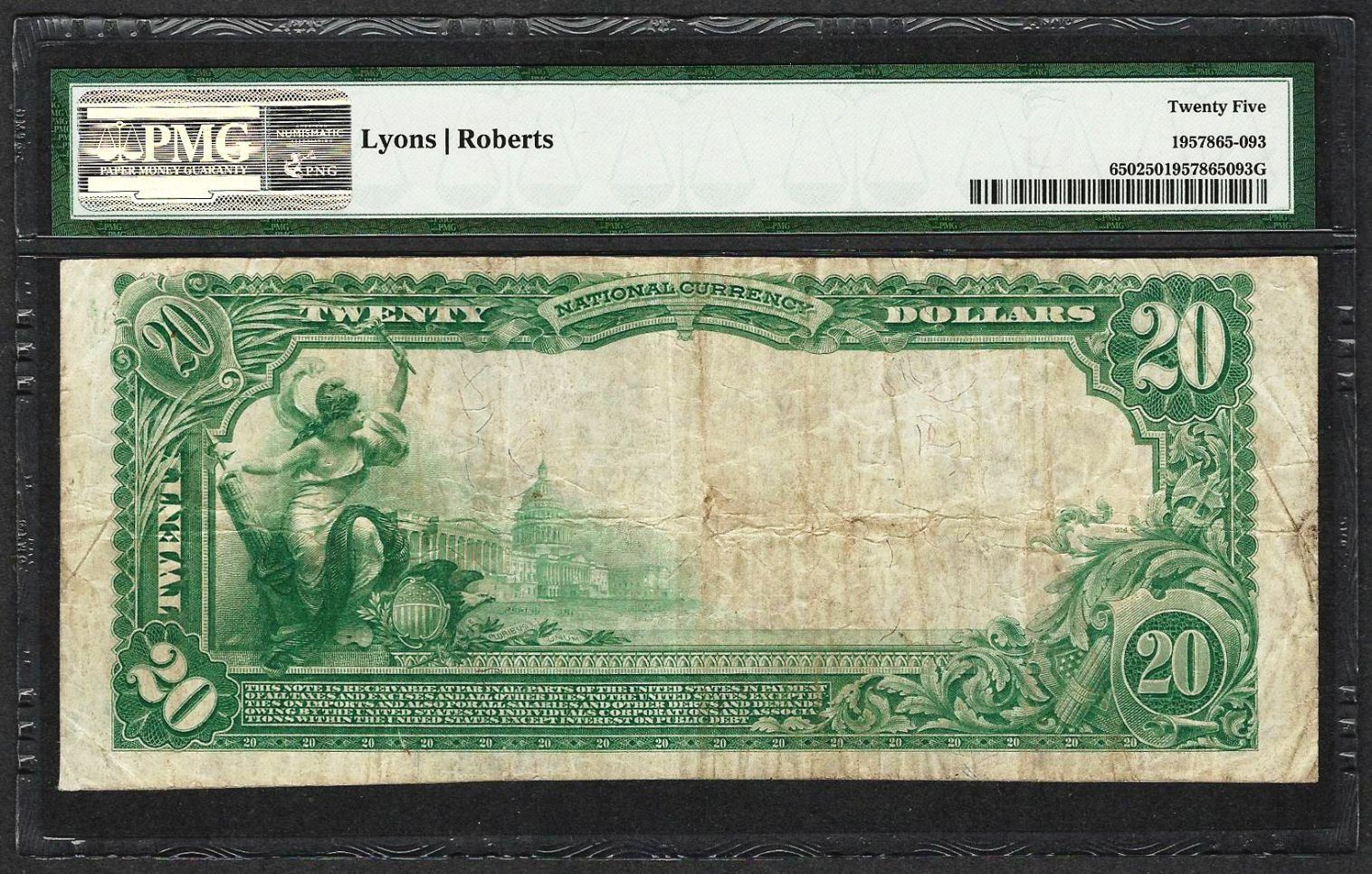 One 1902PB $20 First NB of Washington, Kansas CH# 2912 National Note PMG Very Fine 25.