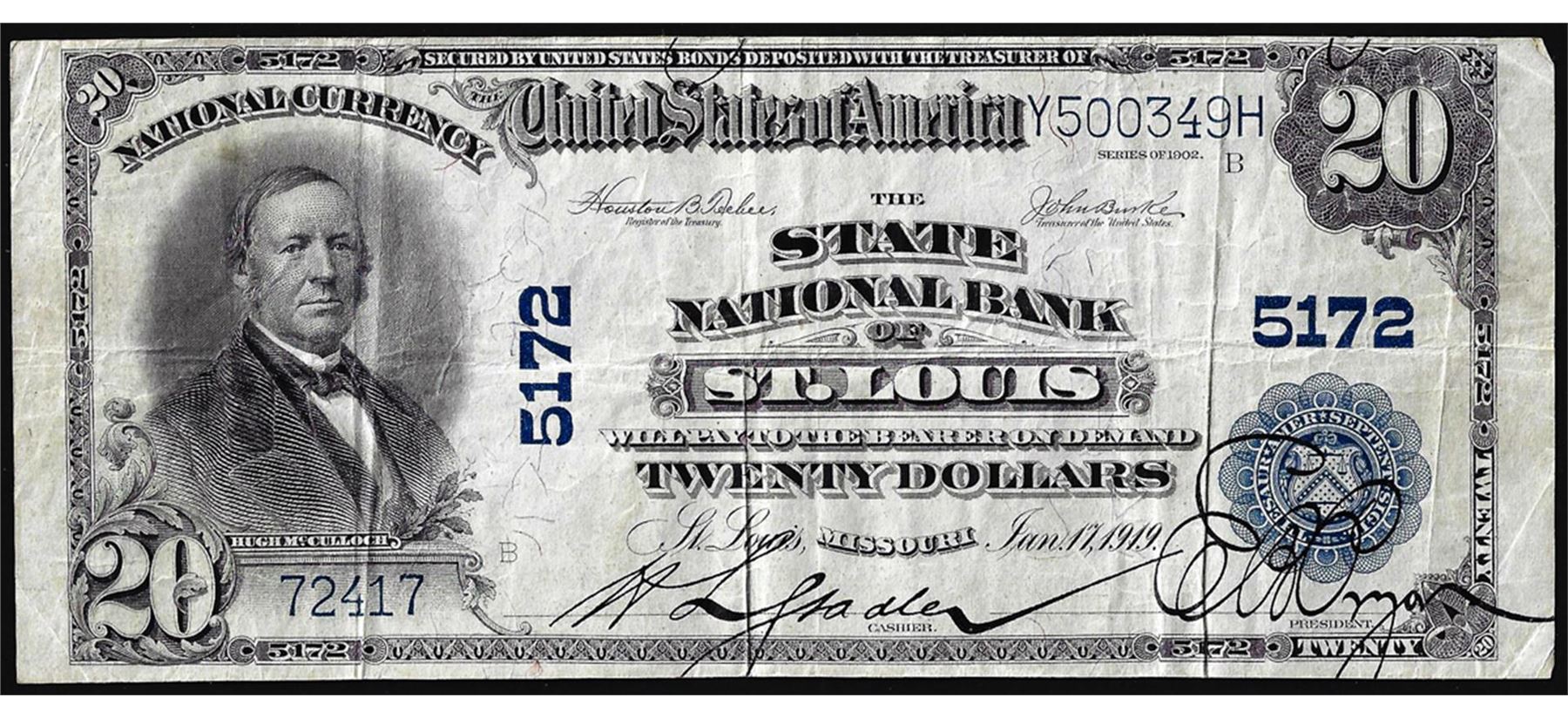 1902PB $20 State NB of St. Louis, MO CH#5172 National Currency Note