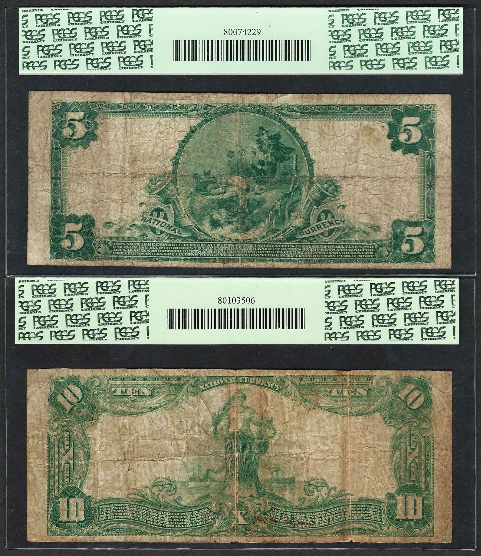 One 1902PB $5/10 First NB of Washington, PA CH# 586 National Currency Notes PCGS VG8/10.