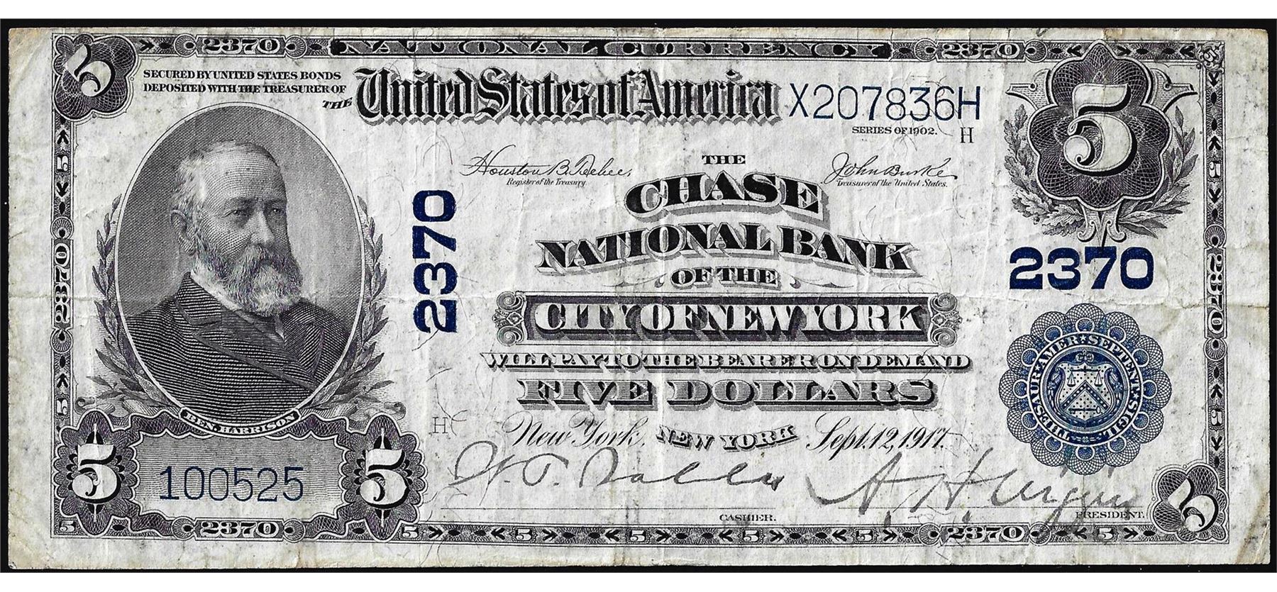 One 1902PB $5 Chase National Bank of the City of New York, NY CH# 2370 National Note.