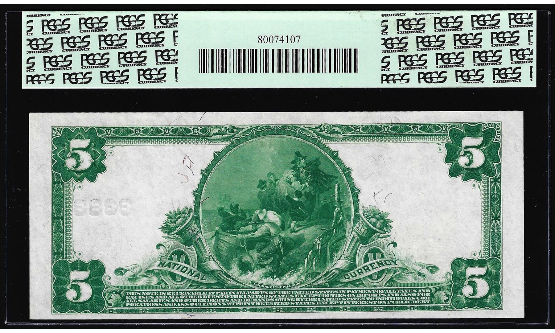 One 1902PB $5 Citizens NB of Washington, PA CH# 3383 National Currency Note PCGS CU64PPQ. PCGS Graded.