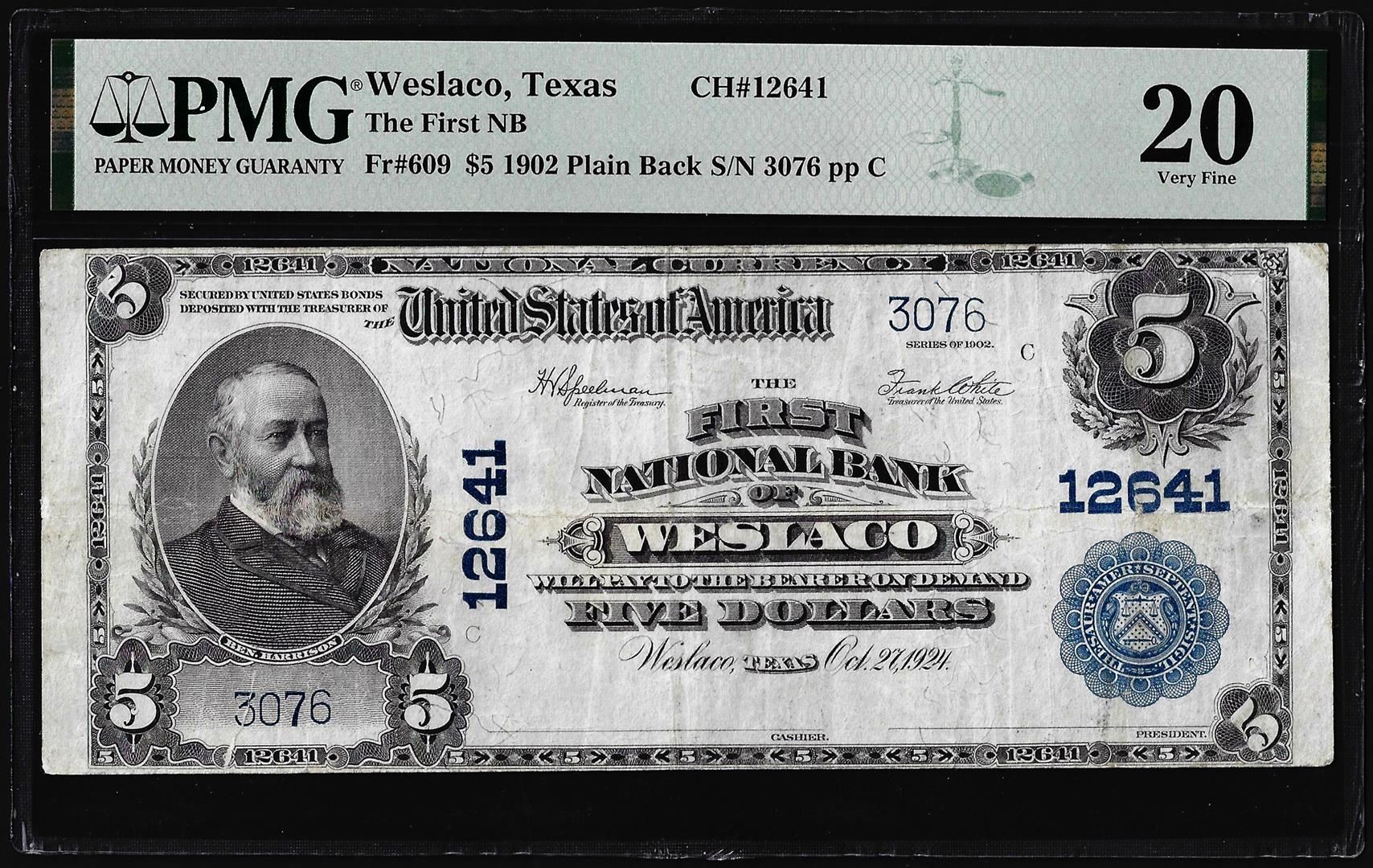 1902PB $5 First NB Weslaco, Texas CH# 12641 National Currency Note PMG Very Fine 20