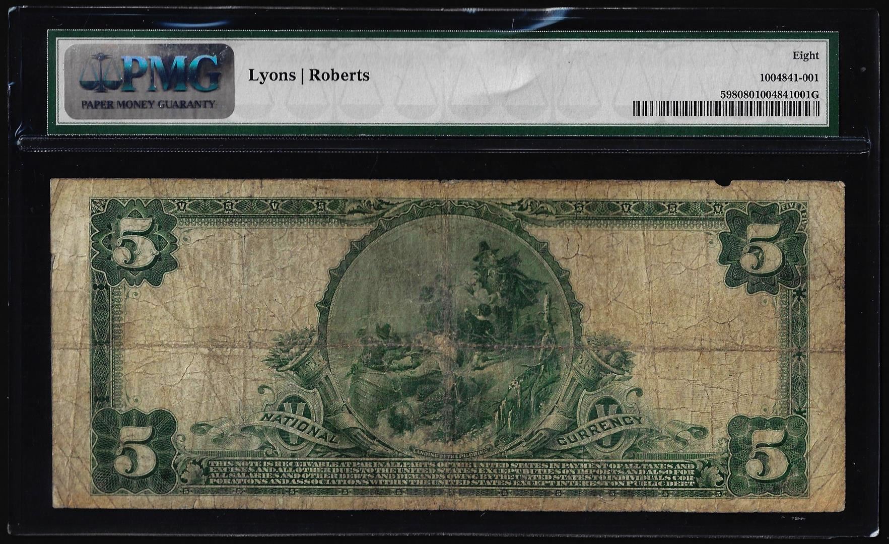 1902PB $5 First NB of Yonkers, NY National Currency Note CH# 653 PMG Very Good 8