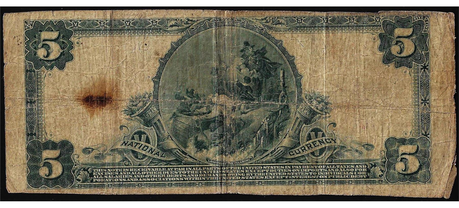 One 1902PB $5 The Merchants NB of Jersey City, NJ CH# 9229 National Currency Note.