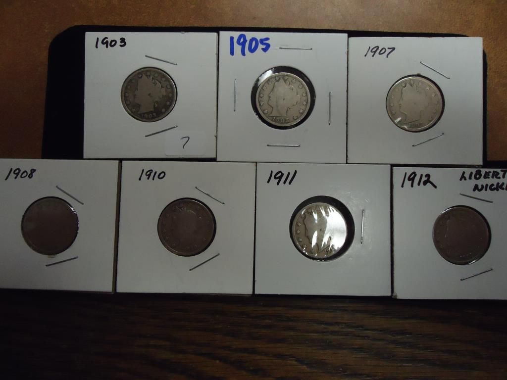 1903,05,07,08,10,11 & 12 LIBERTY "V" NICKELS