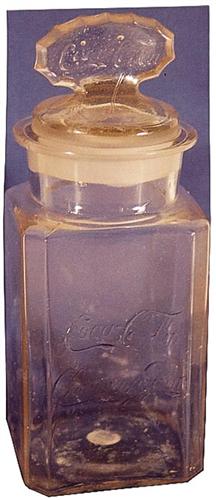 The lid is marked Coca-cola and is ground but sets a bit high in this jar. The jar is very nice overall, does have 1 small chip on the outside of the lip, but clear and fairly clean and nice otherwise. There are a few small chips on the inside of the bottom of the lid. Cond. 8.0-8.5.