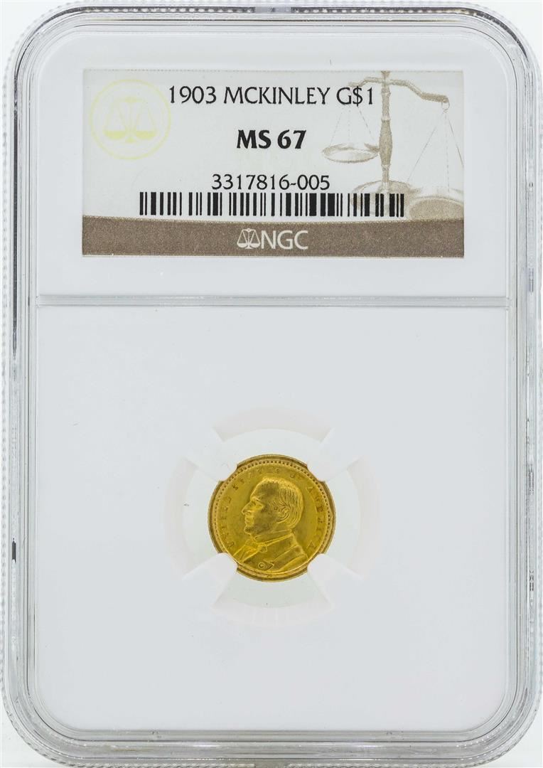 One 1903 $1 Gold Dollar McKinley Coin NGC MS67. NGC Certified.