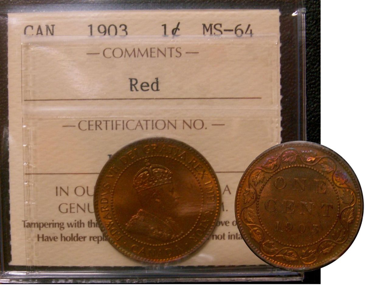 1903 1¢ ICCS MS64RD. 70% red with lustre.