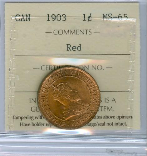 1903 1¢ ICCS MS65RD. 95% red.