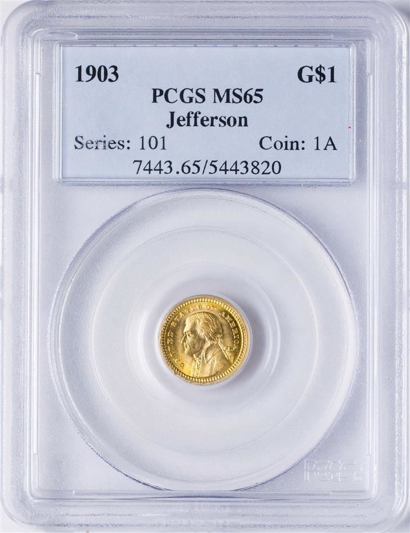 One 1903 $1 Jefferson Louisiana Commemorative Gold Dollar Coin PCGS MS65. PCGS Graded.