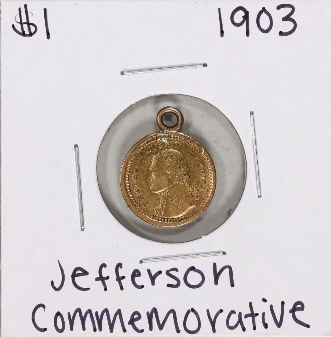 One 1903 $1 Jefferson Louisiana Purchase Commemorative Gold Dollar Coin With Loop.