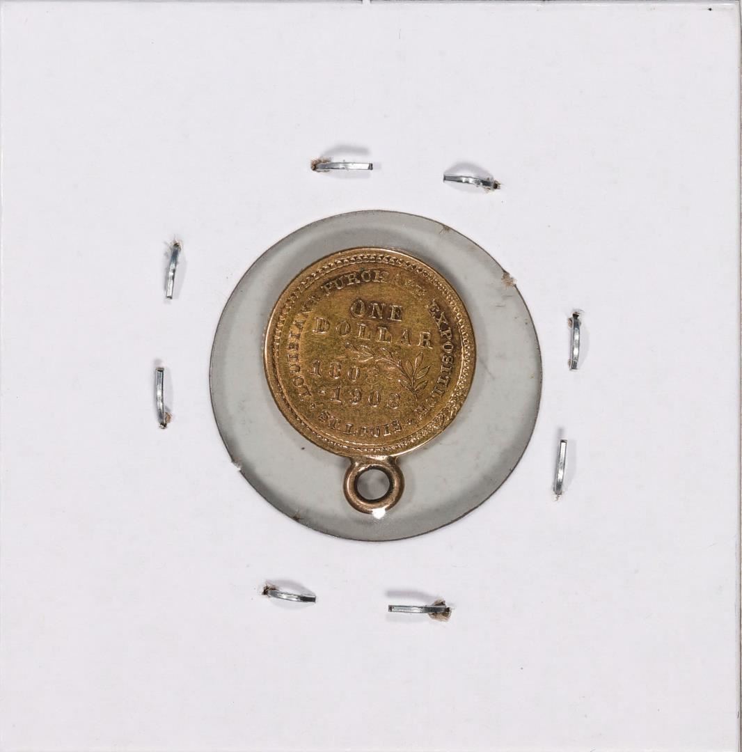 One 1903 $1 Jefferson Louisiana Purchase Commemorative Gold Dollar Coin With Loop.