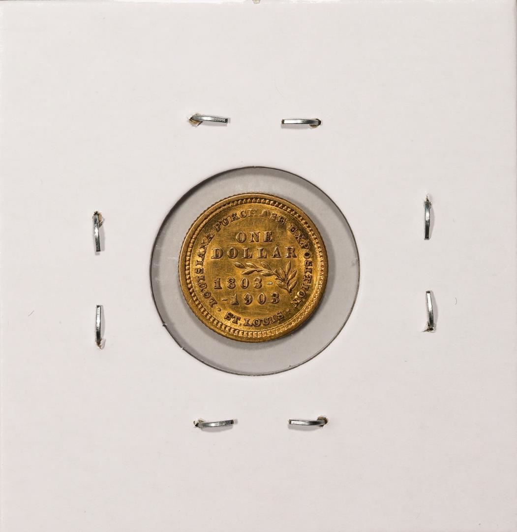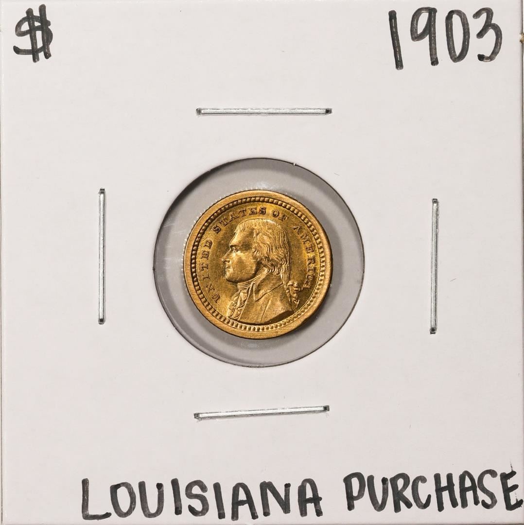 One 1903 $1 Jefferson Louisiana Purchase Commemorative Gold Dollar Coin.