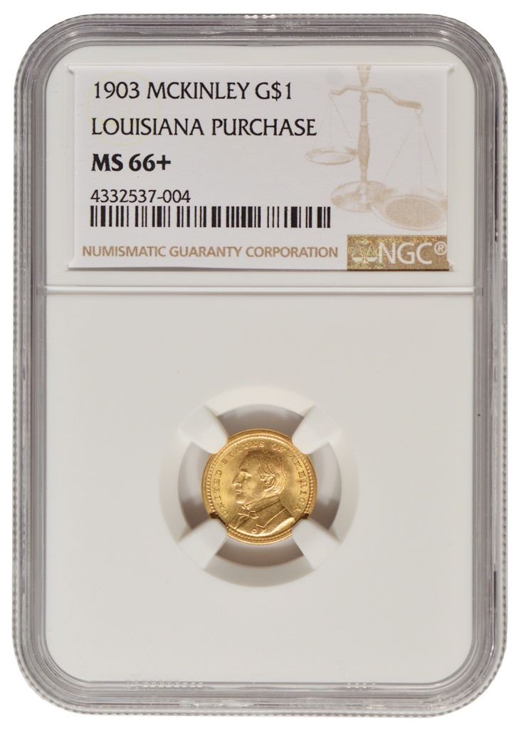 One 1903 $1 McKinley Louisiana Purchase Gold Coin NGC MS66+.