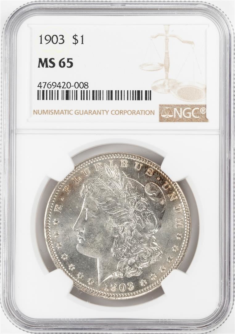 One 1903 $1 Morgan Silver Dollar Coin NGC MS65. NGC Certified.