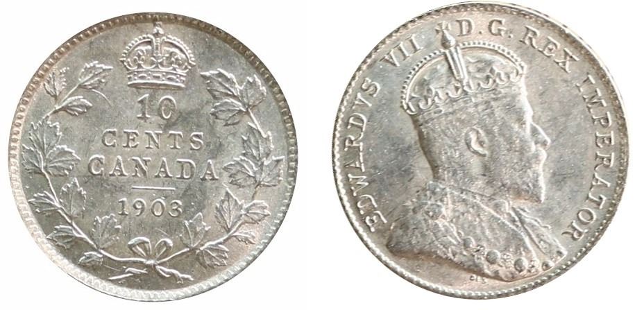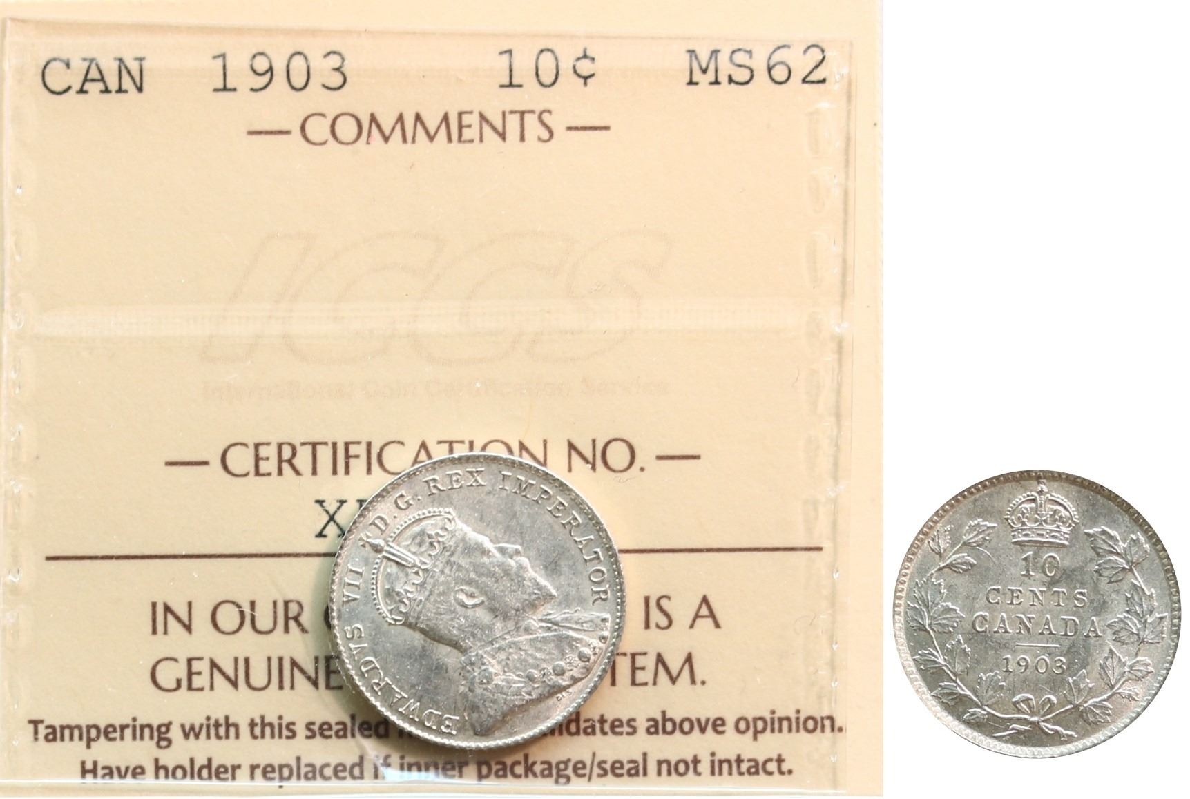 1903 10¢ ICCS Choice Mint State-62. A nice and lustrous example.