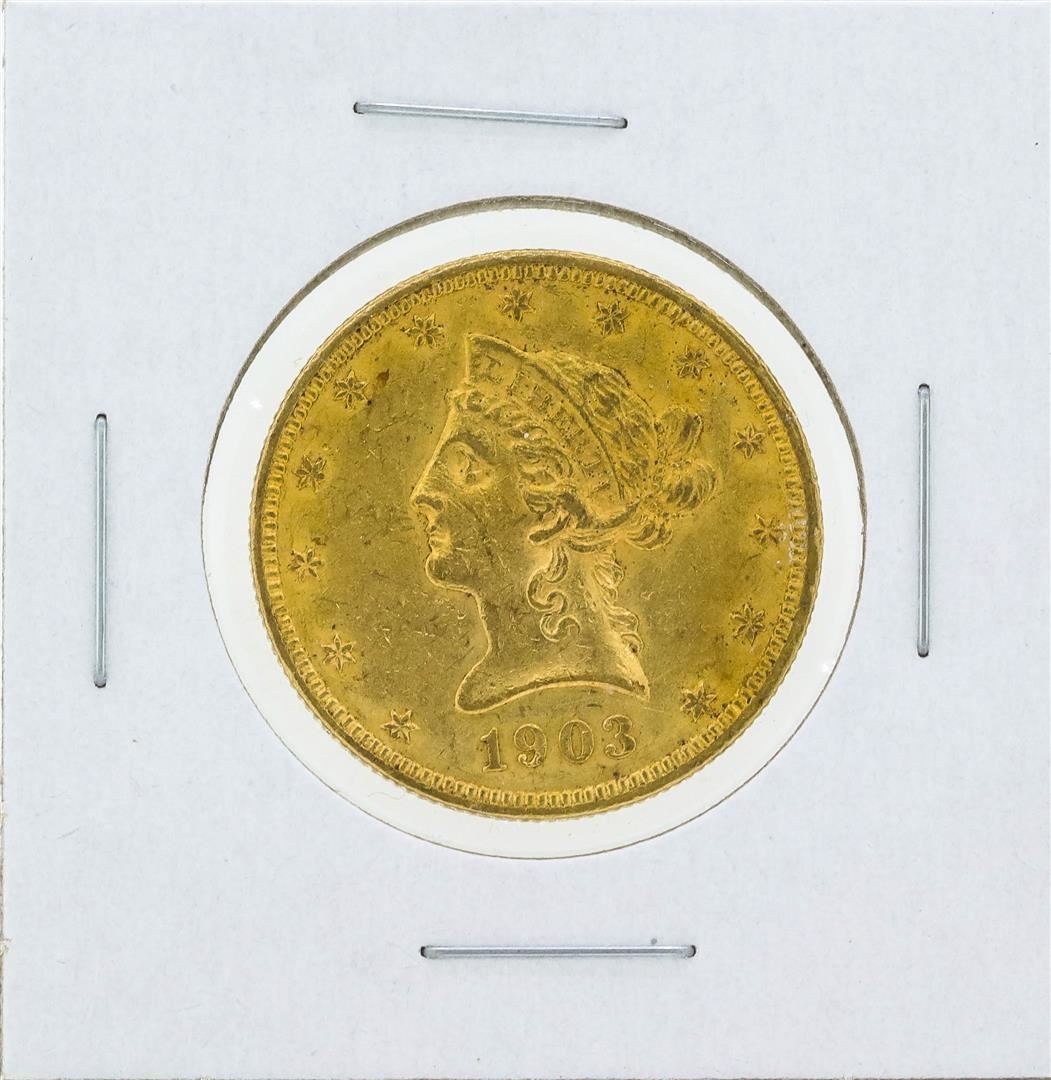 One 1903 $10 Liberty Head Eagle Gold Coin.