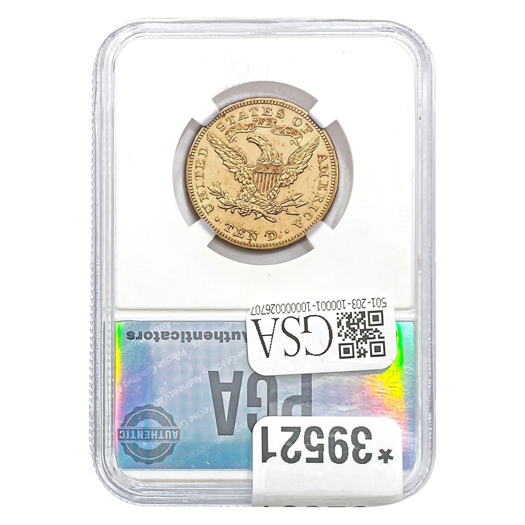 COINS AND CURRENCY LISTED IN GSA’S CATALOG AS GRADED AND ENCAPSULATED BY PCGS, NGC, ANACS, ICG, PCGS CURRENCY, PMG, PCGS BANKNOTE GRADING, CMC OR ANY OTHER THIRD-PARTY GRADING SERVICE ARE LIKEWISE SOLD “AS-IS” EXCEPT AS EXPRESSLY SET FORTH HEREIN. ALL THIRD-PARTY GRADING SERVICE GUARANTEES, INCLUDING AUTHENTICITY, ARE THE SOLE RESPONSIBILITY OF THE THIRD-PARTY GRADING SERVICE AND NOT WARRANTIES OR GUARANTEES OF GSA. BIDDERS SHOULD CONTACT THESE THIRD-PARTY GRADING SERVICES DIRECTLY WITH RESPECT TO ANY CLAIMS OR QUESTIONS THEY MAY HAVE CONCERNING THEIR GUARANTEES AND WARRANTIES. BIDDERS ACKNOWLEDGE AND AGREE THAT AUCTIONEER IS NOT BOUND BY OR LIABLE FOR ANY OPINION OR CERTIFICATION BY ANY THIRD-PARTY GRADING SERVICE. REMOVAL OF A PRODUCT FROM ITS PROTECTIVE CASING OR HOLDER OR ALTERATION OF ANY COIN HOLDER WAIVES ALL RIGHTS CONCERNING THE PRODUCT CONTAINED THEREIN.
