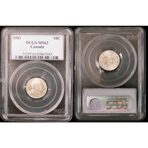 1903 10¢ PCGS MS63. Superb strike and luster.
