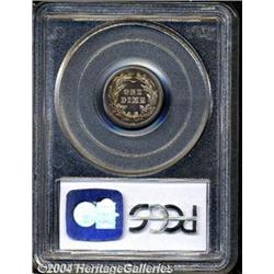 <B>1903<10C> PR64 PCGS.</B></I> Relatively deep multicolored toning on both sides. A few slidemarks on the obverse portrait limit the grade. Population: 56 in 64, 51 finer (3/04). <BR><BR><B>Important notice:</B> Heritage usually auctions material at the rate of 200-250 lots per hour. On some occasions eBay Live bid software or the Internet may not be able to keep up with the pace of the auction. We recommend placing a realistic absentee bid now as insurance to avoid disappointment. Occasionally the auctioneer may eliminate or reject an eBay Live bid, and the auctioneer may also reopen a lot after the close of the eBay live bidding (usually because we missed an audience bid), and may reject your bid even if it shows you as the winning bidder. By bidding via eBay Live, you agree that Heritage may award the lot to another bidder at its sole discretion under the circumstances described above or any other reasonable circumstances. Since eBay bids are not shown to us until we open the lot on the floor, we treat those bids just like floor bids. In most cases the floor responds before the eBay bid is presented to us, due to Internet lag time, so for consistency we have made it a policy that floor bids are always considered first over tie eBay live bids. Also please note that all Heritage lots purchased through eBay Live carry a 20% Buyer's Premium. Please make sure you read the Terms and Conditions before you bid.