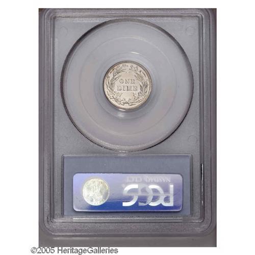 <B>1903<10C> PR66 PCGS.</B></I> Mottled cobalt-blue, golden-brown, and lavender patina bathes the obverse, while the reverse displays just a barely discernible veneer of light color. Sharply struck on the design features, and wonderfully preserved surfaces. One tiny milling mark on the lower left (facing) neck of Liberty identifies the coin. Population: 18 in 66, 5 finer (11/05).