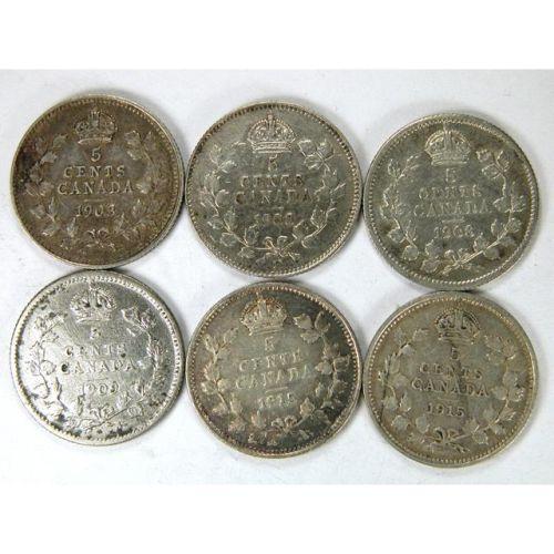 1903, 1903H, 1908 Small 8, 1909 Round Leaves and 1915 two pieces. Total six pieces, all VF