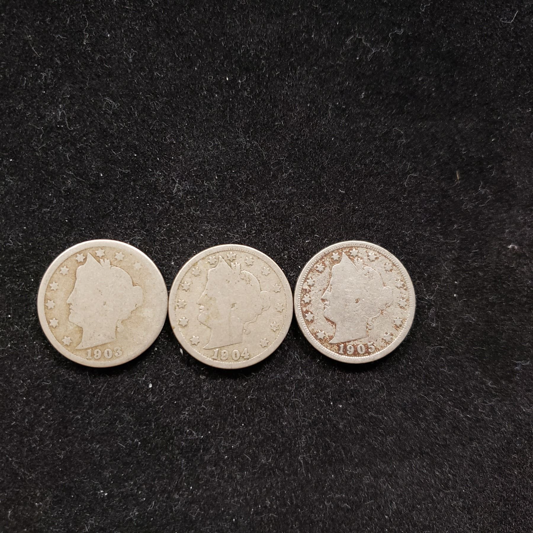 1903,1904,1905 Liberty V Nickels Grade: Mixed