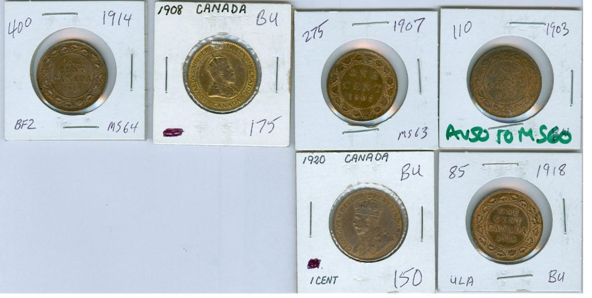 8. The estimates listed are taken from the Canadian Coin News, Charlton catalogues, Canadian Dealers News letter and retail prices, e-bay sales, Cornwell report and/or the actual market selling/ asking prices. Key dates and Highest grade material will generally command a premium and should sell close to and/or above the estimates. Our estimates are fair and very reasonable, please bid accordingly. No lot should sell less than 50% of the lowest estimates. With a bid of 80% of the lowest estimate, you have a fair chance of succeeding, with a bid of 100% of the highest estimate, you will be likely to succeed.