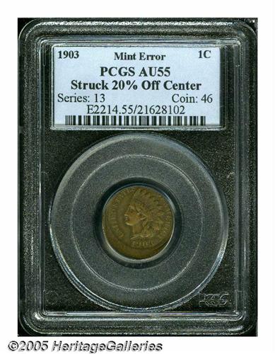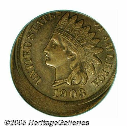 <B>1903<1C> Indian Cent--Struck 20% Off Center--AU55 PCGS.</B></I> Sharp detail remains on this example showing an off center strike to the 1 o'clock position. Medium, subdued brown color shows overall.<BR><I>From The Larry Rausch Collection, Part Five.</B></I>