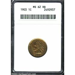 1903 1C MS62 Red and Brown ANACS. The colors are a blend of yellowish-green, orange, and purple-red on each side. There are just a few trivial contact marks, on the obverse. Well struck and lustrous. Important notice: We expect to be auctioning lots at the rate of 200-250 per hour. On occasion eBay live bid software cannot keep up with the pace of the auctions where 4-5 lots per minute can hammer down, so we recommend that you place a realistic absentee bid now as insurance to avoid disappointment. Also please note that all Heritage/CAA lots purchased through eBay Live carry a 20% Buyer's Premium. Please make sure you read the Terms and Conditions.