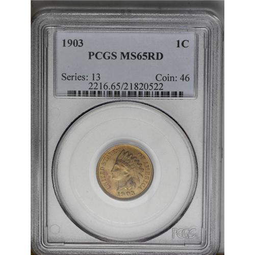 <B>1903<1C> MS65 Red PCGS.</B></I> Coppery-gold patina displays a blush of crimson in the left (facing) obverse field. A minute mark is noted on the Indian's jaw.