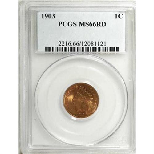 <B>1903 1C MS66 Red PCGS.</B></I> The reddish-orange surfaces of this marvelous Premium Gem show subtle satin and delightful vibrancy. The overall eye appeal is excellent, and the coin's appearance is suggestive of an even finer designation. Population: 53 in 66 Red, 5 finer (12/07).<BR><BR><B>Coin Engraver:</B> James B. Longacre<BR><BR><b>Shipping:</b> Coins & Currency (<a target="_blank" href="http://www.heritageauctions.com/common/shipping.php">view shipping information</a>)