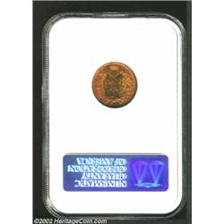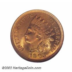 1903 1C MS67 Red NGC. Surely this is one of the finest examples known of this popular, late date issue. The surfaces are virtually perfect and the thick mint frost races around each side unimpeded by the abrasions or carbon spotting that mar lesser graded coins. Population: 6 in 67, 0 finer (7/02). Important notice: We expect to be auctioning lots at the rate of 200-250 per hour. Sometimes eBay Premier live bid software cannot keep up with that pace, so we strongly recommend that you place a realistic proxy bid now as insurance to avoid disappointment. Also please note that all Heritage/CAA lots purchased through eBay Premier carry a 20% Buyer's Premium. Please make sure you read the Terms and Conditions.