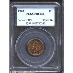 1903 1C PR64 Red and Brown PCGS. A well struck and carefully preserved near-Gem that features gorgeous yellow-green and ruby-red color. A bright and attractive proof Cent. Important notice: We expect to be auctioning lots at the rate of 200-250 per hour. Sometimes eBay Premier live bid software cannot keep up with that pace, so we strongly recommend that you place a realistic proxy bid now as insurance to avoid disappointment. Also please note that all Heritage/CAA lots purchased through eBay Premier carry a 20% Buyer's Premium. Please make sure you read the Terms and Conditions.