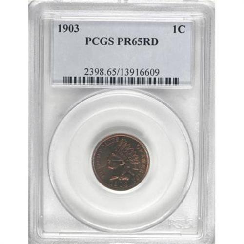 <B>1903 1C PR65 Red PCGS.</B></I> The predominantly copper-orange surfaces of this gleaming Gem proof show a blush of magenta on the obverse and hints of lemon-gold on the reverse. Sharply struck with amazing eye appeal. Population: 34 in 65 Red, 41 finer (8/07).<BR><BR><B>Coin Engraver:</B> James B. Longacre<BR><BR><b>Shipping:</b> Coins & Currency (<a target="_blank" href="http://www.heritageauctions.com/common/shipping.php">view shipping information</a>)
