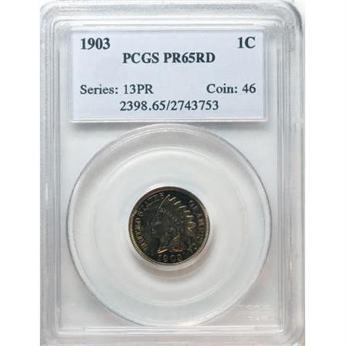 <B>1903 1C PR65 Red PCGS.</B></I> Sharply struck and wonderfully preserved with highly reflective fields, bright olive-yellow and crimson-pink colors with a touch of milkiness at the reverse fields. Excellent overall preservation for the Gem designation. Population: 34 in 65 Red, 41 finer (12/07).<BR><I>From The New York Eye Appeal Collection, Part Three.</B></I><BR><BR><B>Coin Engraver:</B> James B. Longacre<BR><BR><b>Shipping:</b> Coins & Currency (<a target="_blank" href="http://www.heritageauctions.com/common/shipping.php">view shipping information</a>)