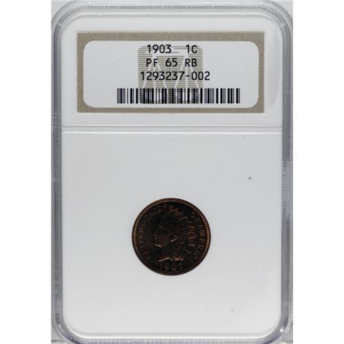 <B>1903 1C PR65 Red and Brown NGC.</B></I> NGC Census: (74/32). PCGS Population (29/5). Mintage: 1,790. Numismedia Wsl. Price for NGC/PCGS coin in PR65: $420. (#2397)<BR><BR><b>Shipping:</b> Coins & Currency (<a target="_blank" href="http://www.heritageauctions.com/common/shipping.php">view shipping information</a>)