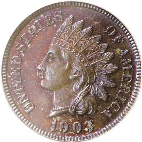 1903 1C PR66 Brown PCGS. Vivid, electric purplish-blue