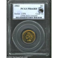 1903 1C PR66 Red PCGS. Eagle Eye Photo Seal. A wondrous proof Indian Cent. Both sides are bright and