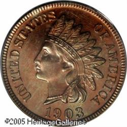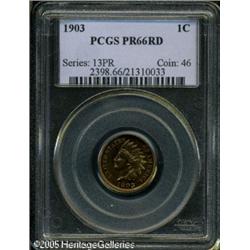 <B>1903 1C PR66 Red PCGS.</B></I> Intricately detailed with rich apricot-red and lime-green coloration complimented by smooth, highly reflective fields. Population: 28 in 66, 8 finer (1/05). Lot:5351