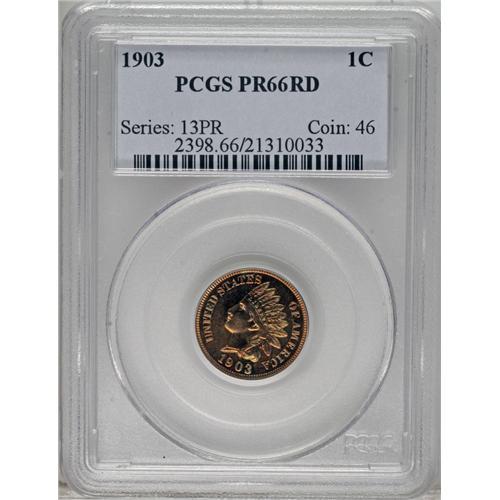 <B>1903 1C PR66 Red PCGS.</B></I> Intricately detailed with rich apricot-red and lime-green coloration complemented by smooth, highly reflective fields. Population: 31 in 66 Red, 10 finer (2/07).<BR><BR><b>Shipping:</b> Coins & Currency (<a target="_blank" href="http://www.heritageauctions.com/common/shipping.php">view shipping information</a>)