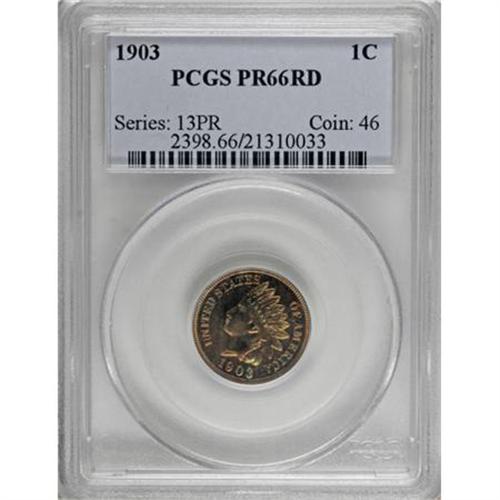 <B>1903 1C PR66 Red PCGS.</B></I> Intricately detailed with rich cherry-red and lime-green coloration complemented by smooth, highly reflective fields. Exceptional quality. Population: 31 in 66, 11 finer (8/07).<BR><BR><B>Coin Engraver:</B> James B. Longacre<BR><BR><b>Shipping:</b> Coins & Currency (<a target="_blank" href="http://www.heritageauctions.com/common/shipping.php">view shipping information</a>)
