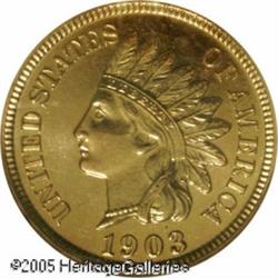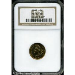 <B>1903 1C PR67 Red NGC.</B></I> A boldly struck, apricot-gold Superb Gem that is devoid of contact and virtually without carbon. An unimprovable specimen worthy of the finest Registry Set. The tops of errant date digits are embedded in the denticles, as is usual for this proof issue. Population: 2 in 67, none are finer at either service (1/05). Lot:5352