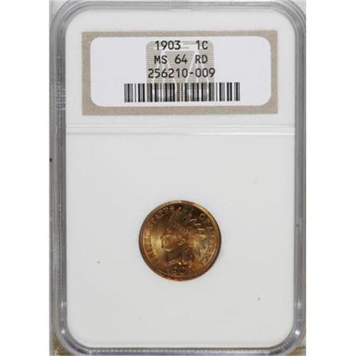<B>1903 1C MS64 Red NGC.</B></I> NGC Census: (157/183). PCGS Population (272/235). Mintage: 85,094,496. Numismedia Wsl. Price for NGC/PCGS coin in MS64: $150. (#2216)<BR><BR><B>Coin Engraver:</B> James B. Longacre<BR><BR><b>Shipping:</b> Coins & Currency (<a target="_blank" href="http://www.heritageauctions.com/common/shipping.php">view shipping information</a>)