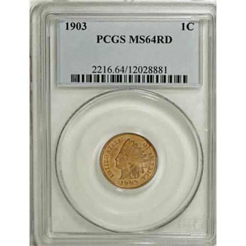<B>1903 1C MS64 Red PCGS.</B></I> PCGS Population (267/234). NGC Census: (157/183). Mintage: 85,094,496. Numismedia Wsl. Price for NGC/PCGS coin in MS64: $142. (#2216)<BR><BR><B>Coin Engraver:</B> James B. Longacre<BR><BR><b>Shipping:</b> Coins & Currency (<a target="_blank" href="http://www.heritageauctions.com/common/shipping.php">view shipping information</a>)