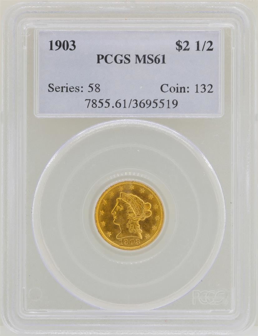 One 1903 $2 1/2 Liberty Head Quarter Eagle Gold Coin PCGS MS61. PCGS Graded.
