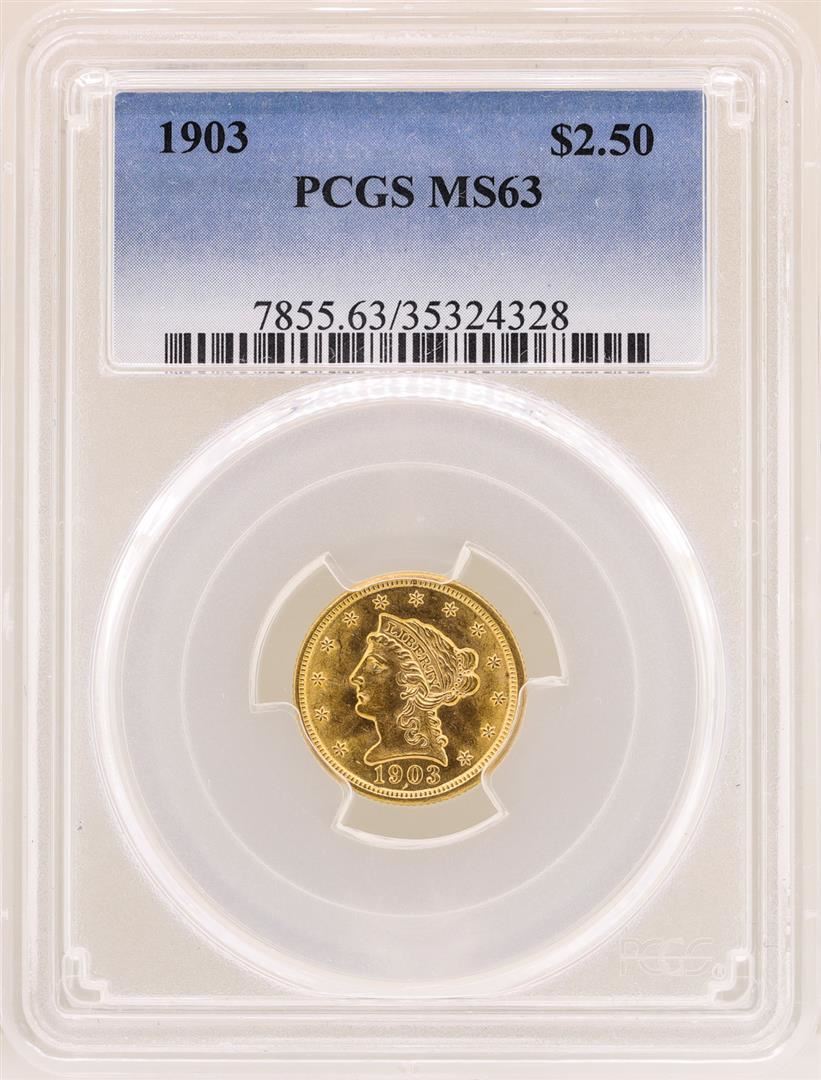 One 1903 $2 1/2 Liberty Head Quarter Eagle Gold Coin PCGS MS63. PCGS Graded.