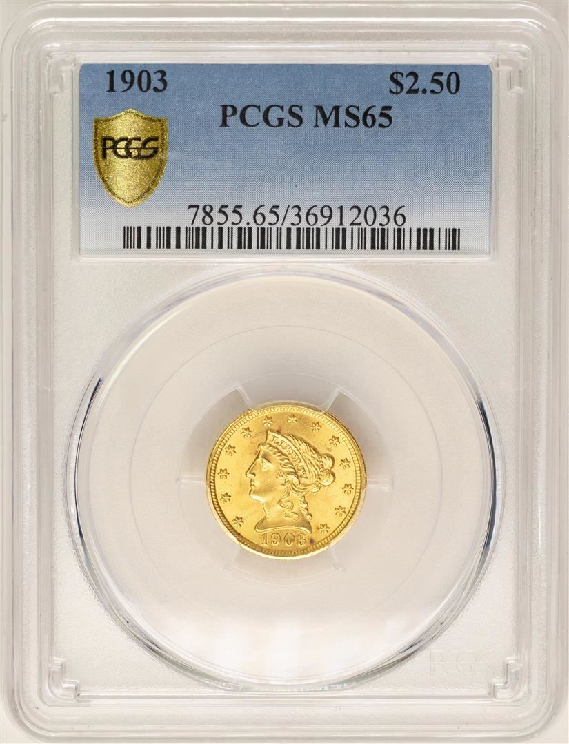 One 1903 $2 1/2 Liberty Head Quarter Eagle Gold Coin PCGS MS65. PCGS Graded.
