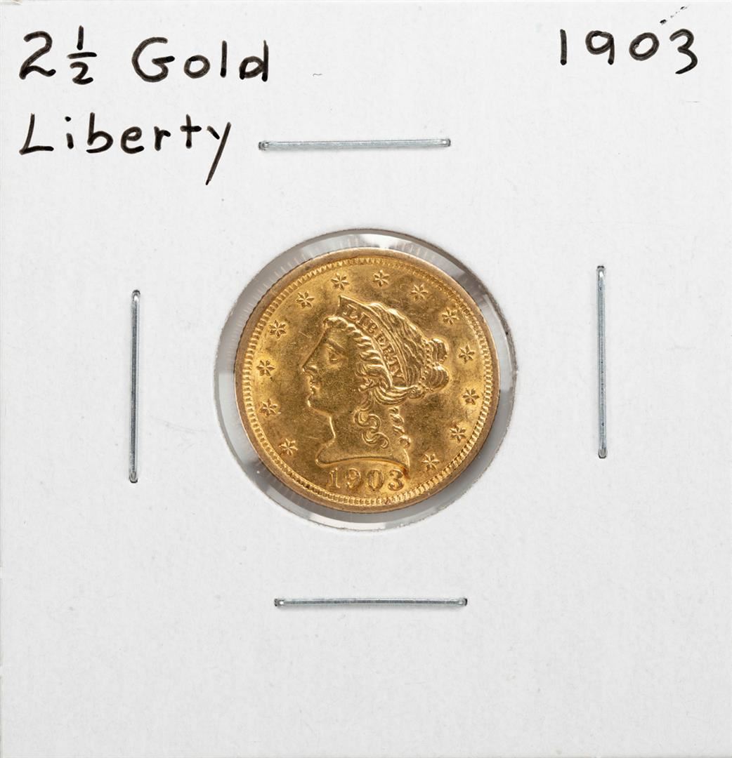One 1903 $2 1/2 Liberty Head Quarter Eagle Gold Coin.